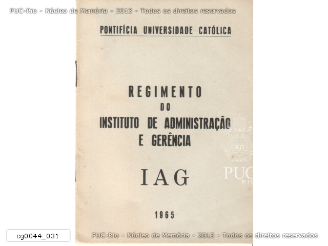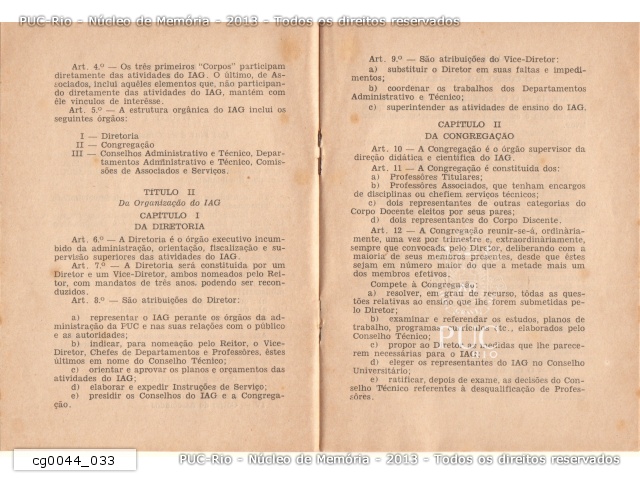 Regimento do Instituto de Administração e Gerência. Da organização do IAG - Diretoria, Congregação. |