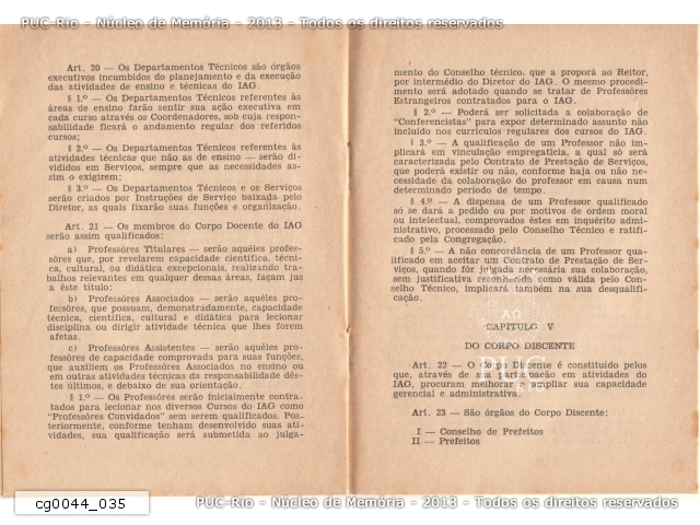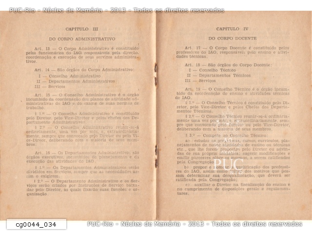 Regimento do Instituto de Administração e Gerência. Do corpo administrativo; do corpo docente. |