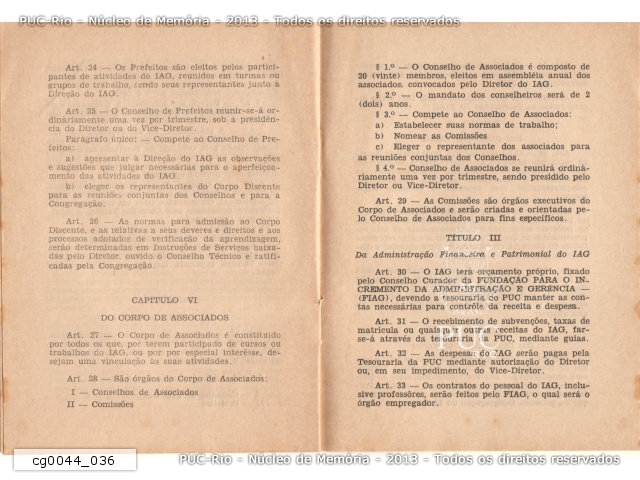 Regimento do Instituto de Administração e Gerência. Do corpo de associados; da administração financeira e patrimonial. |