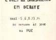 Contracapa. Programação do IV Congresso Interno da PUC-Rio. Folheto sobre a programação do Congresso Interno da PUC, realizado pela ADPUC e pelo DCE. Dias 05, 06, 08, 13 e 14 de Outubro. |