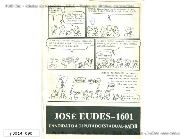 Propaganda eleitoral do candidato a deputado estadual José Eudes, do MDB, sob a forma de quadrinhos. |