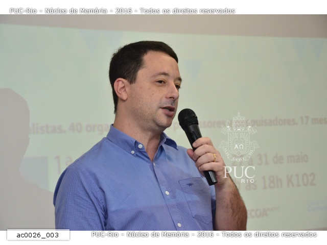 Felipe Gomberg, coordenador do curso de Jornalismo, do Departamento de Comunicação Social e da Editora PUC-Rio, na Abertura da Semana de Jornalismo, promovida pelo Departamento de Comunicação Social. |