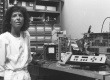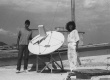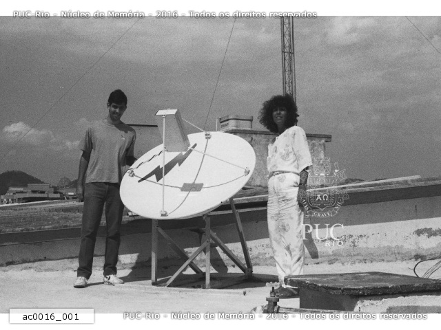 Marlene Sabino e Rodolfo Saboia, na época estagiário de propagação, ao lado da antena parabólica da PUC. |