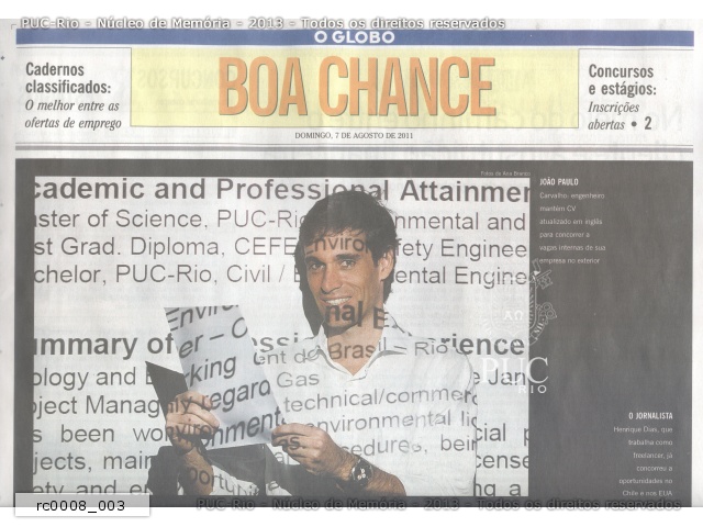 PUC-Rio em jornais impressos. - rc0008_002 |