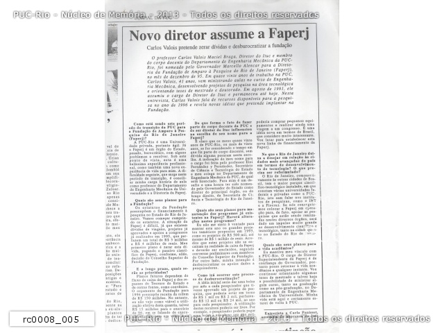 Artigo do Jornal da PUC, 'Novo diretor assume a FAPERJ' |