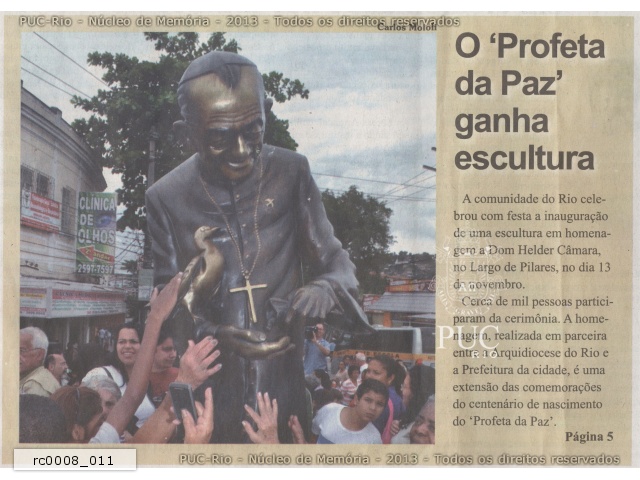 Artigo do jornal O Testemunho da Fé, 'Dom Helder recebe homenagem do povo carioca' |