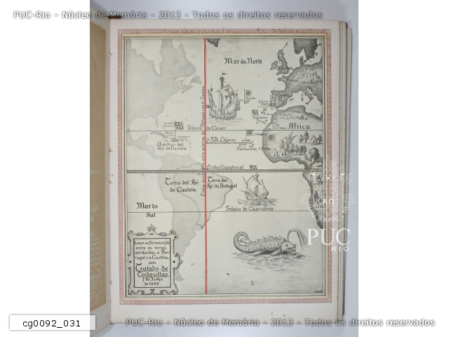Mapa: Linha de Demarcação entre as terras atribuídas a Portugal e Castela pelo Tratado de Tordesilhas, 7 de junho de 1494. SOARES, José Carlos de Macedo. Fronteiras do Brasil no Regime Colonial. Rio de Janeiro: José Olympio, 1939. |