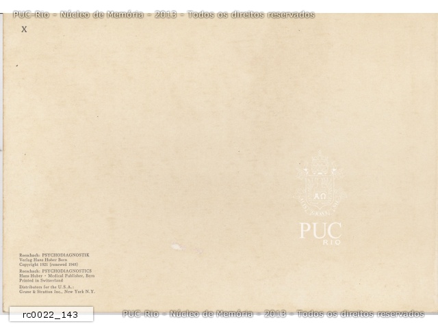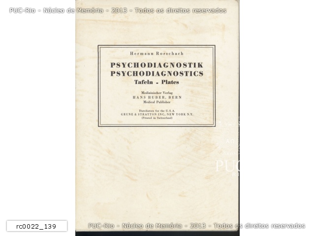 Conta-capa - Hermann RORSCHACH - Psychodiagnostik Psychodiagnostics Tafeln - Plates. |