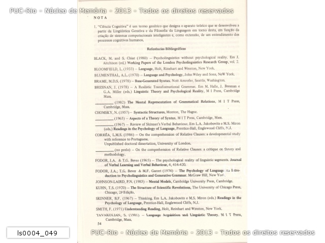 Nota e bibliografia do texto da professora Letícia M. Sicúro Corrêa do Departamento de Letras sobre a pesquisa em psicolinguistica. |
