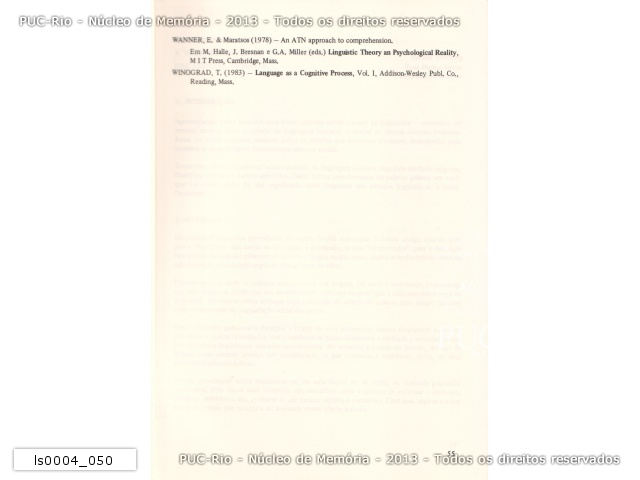 Continuação da bibliografia do texto da professora Letícia M. Sicúro Corrêa do Departamento de Letras sobre a pesquisa em psicolinguistica. |