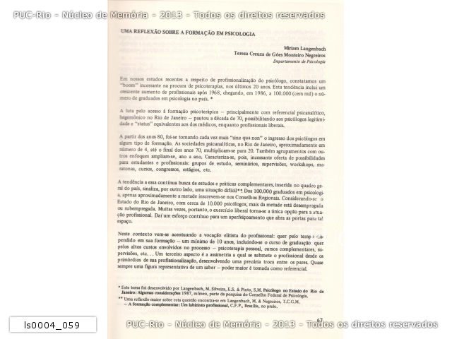Continuação do Texto das profas. Miriam Langenbach e Tereza Creuza de Góes Monteiro Negreiros do Departamento de Psicologia sobre a carreria de psicologo e o forte desemprego sofrido por profissionais desse ramo. Apresentam uma teoria de uma 'vocação elitista' para o psicólogos. |