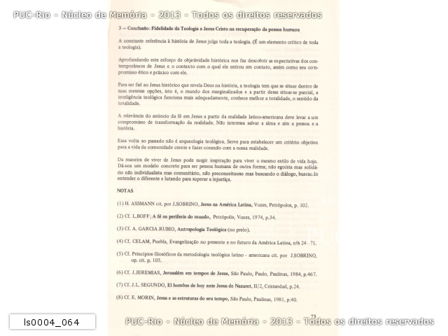 Continuação do texto da professora Ana Maria Tapedino do Departamento de Teologia onde diz que a fé tem que estar aberta aos desafios da realidade. Nesta página a conclusão do texto e as notas. |