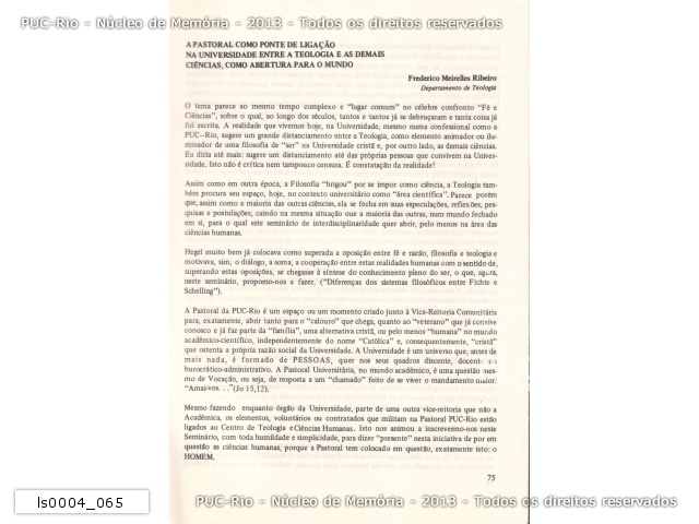 Texto do professor Frederico Mirelles Ribeiro do Departamento de Teologia sobre o espaço do Centro de Pastoral Anchieta e seu papel para com a Universidade. |