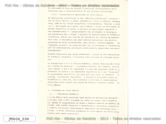 Diretrizes Acadêmicas para 1983/1984 Centro Técnico Científico. Sobre os cursos do CTC e o ciclo básico. |
