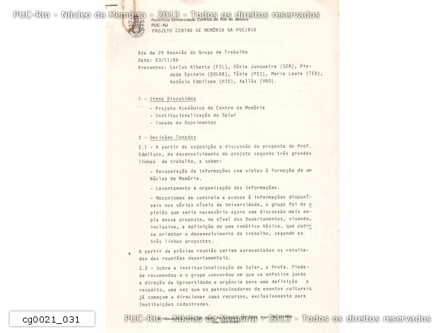 Projeto do Centro de Memória da PUC/RJ - 1987 - cg0021_019 |