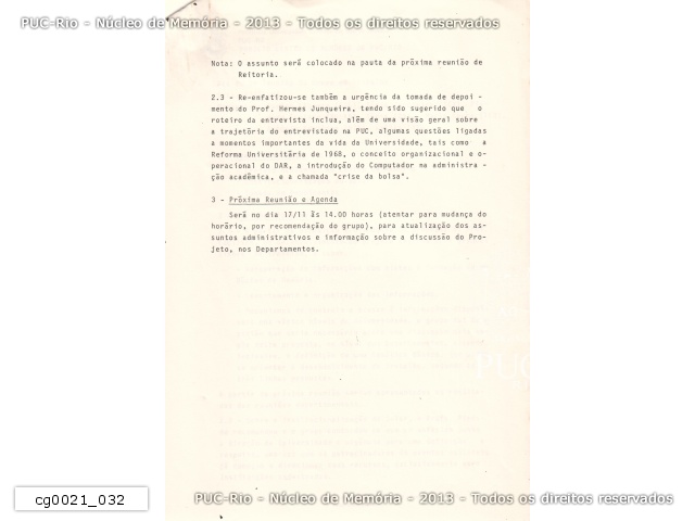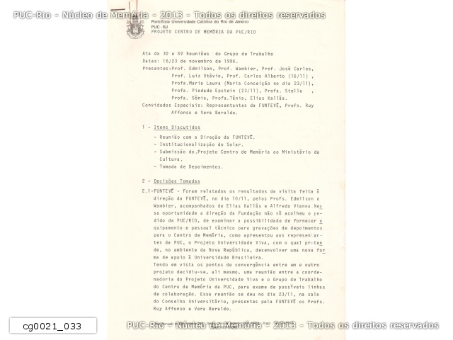 Projeto do Centro de Memória da PUC/RJ - 1987 - cg0021_033 |