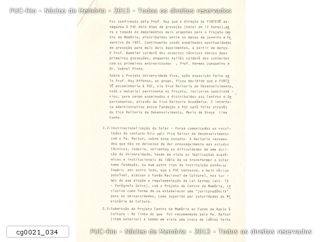 Projeto do Centro de Memória da PUC/RJ - 1987 - cg0021_034 |