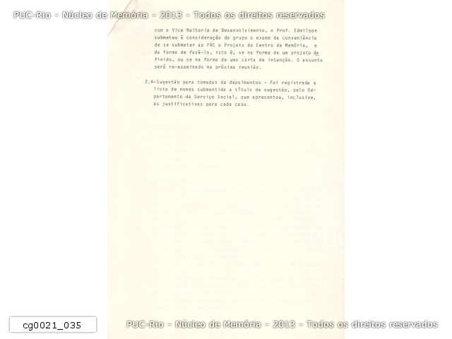Projeto do Centro de Memória da PUC/RJ - 1987 - cg0021_035 |