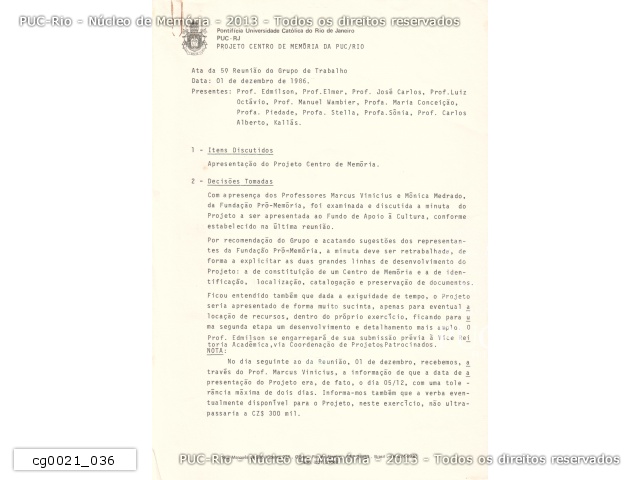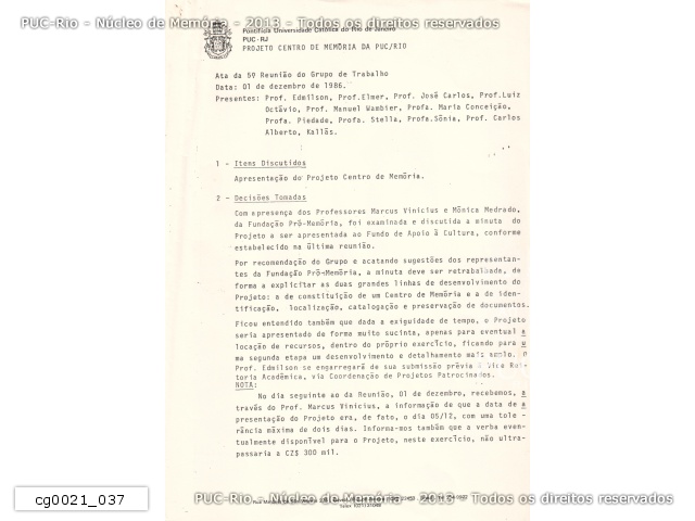 Projeto do Centro de Memória da PUC/RJ - 1987 - cg0021_037 |