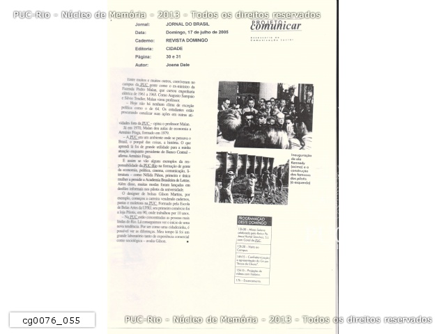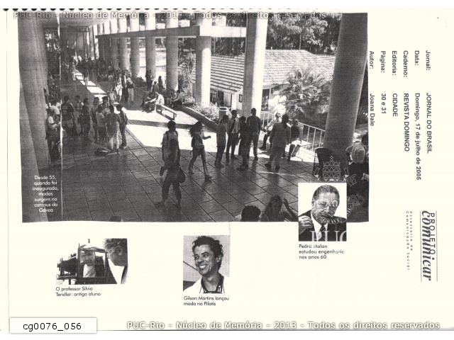 Reportagem na Revista de Domingo do Jornal do Brasil de 17/07/2005 sobre os 50 anos da PUC-Rio na Gávea. |