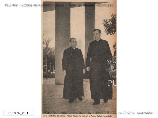 Legenda: "Dois cientistas de batina: Padre Roser (o baixo) e Padre Cullen (o alto)." O Corcovado ao fundo. |