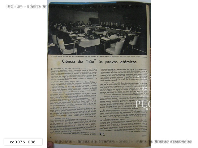 Revista Manchete no. 335: p.18 - "Ciência diz ´não´ às provas atômicas". Com foto de reunião na ONU. |