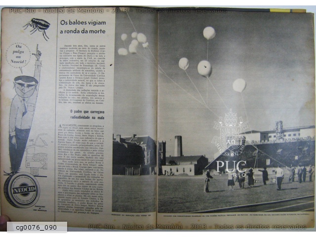 Revista Manchete no. 335: p.22 e 23 - título: "Os balões vigiam a ronda da morte". Eexperiências do Pe.Roser na Califórnia. |
