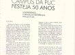 Reportagem na Revista de Domingo do Jornal do Brasil, com foto, sobre os 50 anos da PUC-Rio na Gávea. |