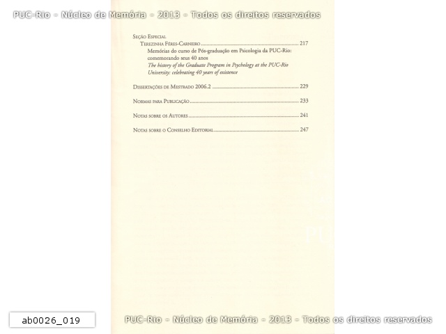 Sumário. 40 anos da Pós-Graduação em Psicologia. |