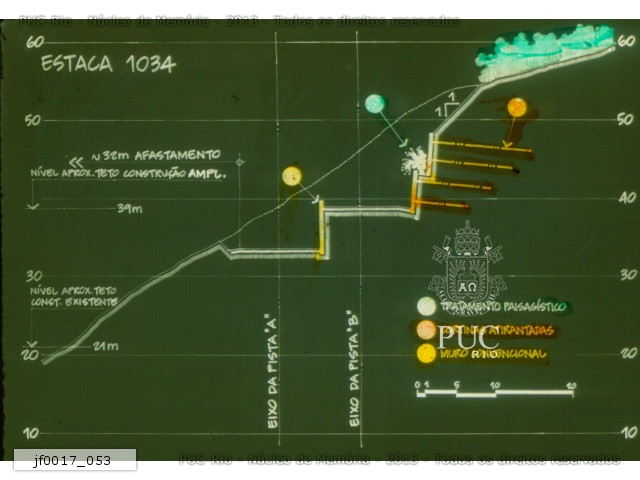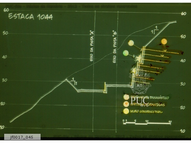Projeto para a construção do Túnel Dois Irmãos. Estaca 1034. Auto-estrada Lagoa-Barra. |