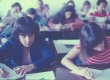 Sala de aula, aparentemente durante uma prova. |