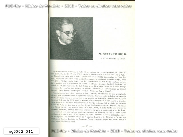 Pequena biografia publicada no anuário em homenagem ao Pe.Francisco Xavier Roser, que falecera em 12 de fevereiro de 1967. |