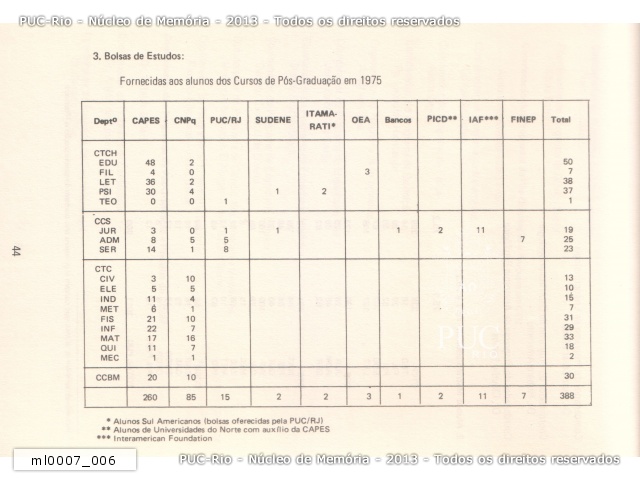 Quadro de bolsas de estudos fornecidas aos alunos de Pós-Graduação no ano de 1975. |