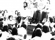 Alunos reunidos nos pilotis com membros da Chapa Unidade em palanque, no aguardo da chegada de Miguel Arraes. |